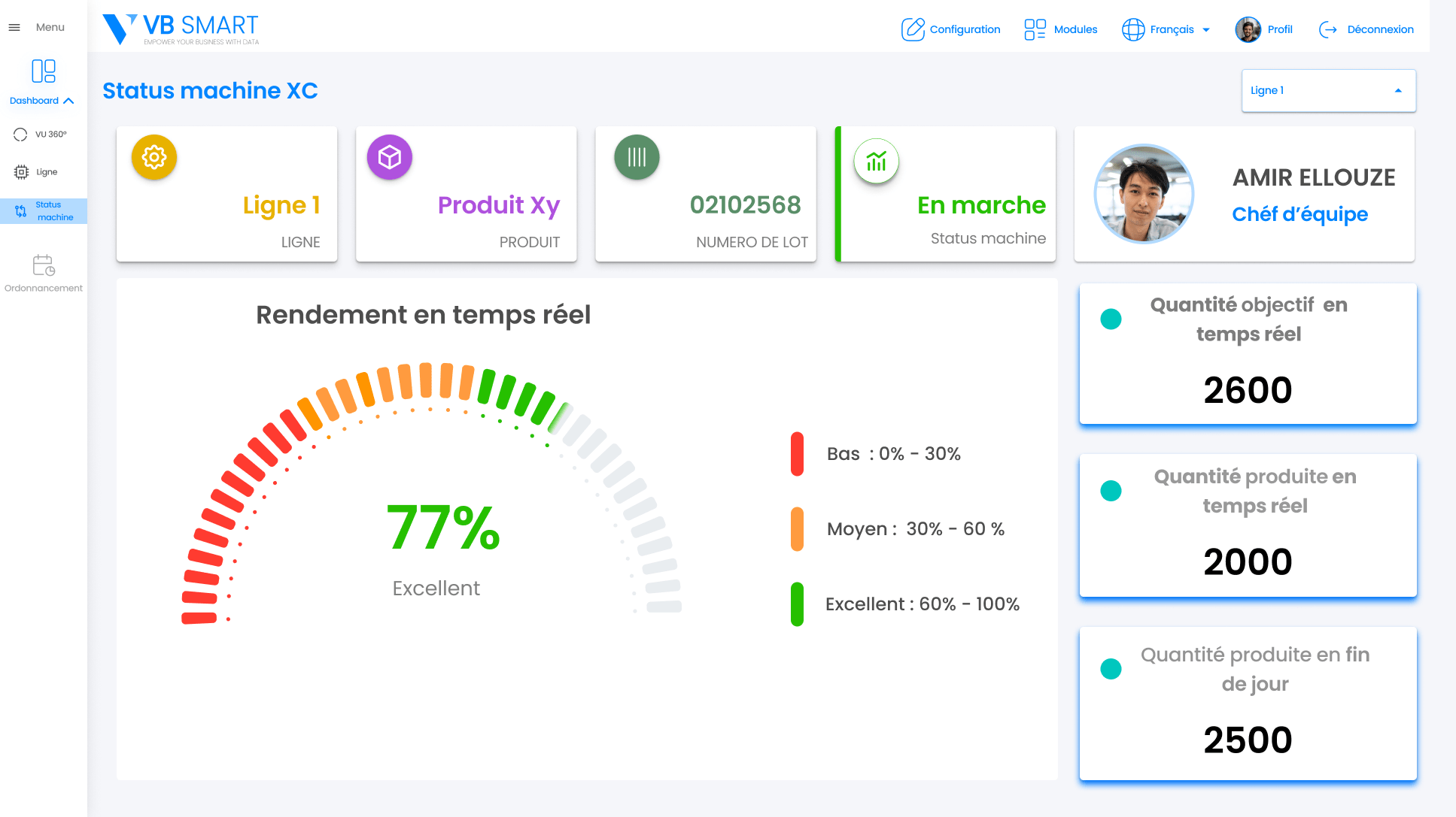 VB SMART  propose son propre  logiciel de production qui va  exploiter les données collectées et structurées pour les afficher dans des tableaux de bord industriels