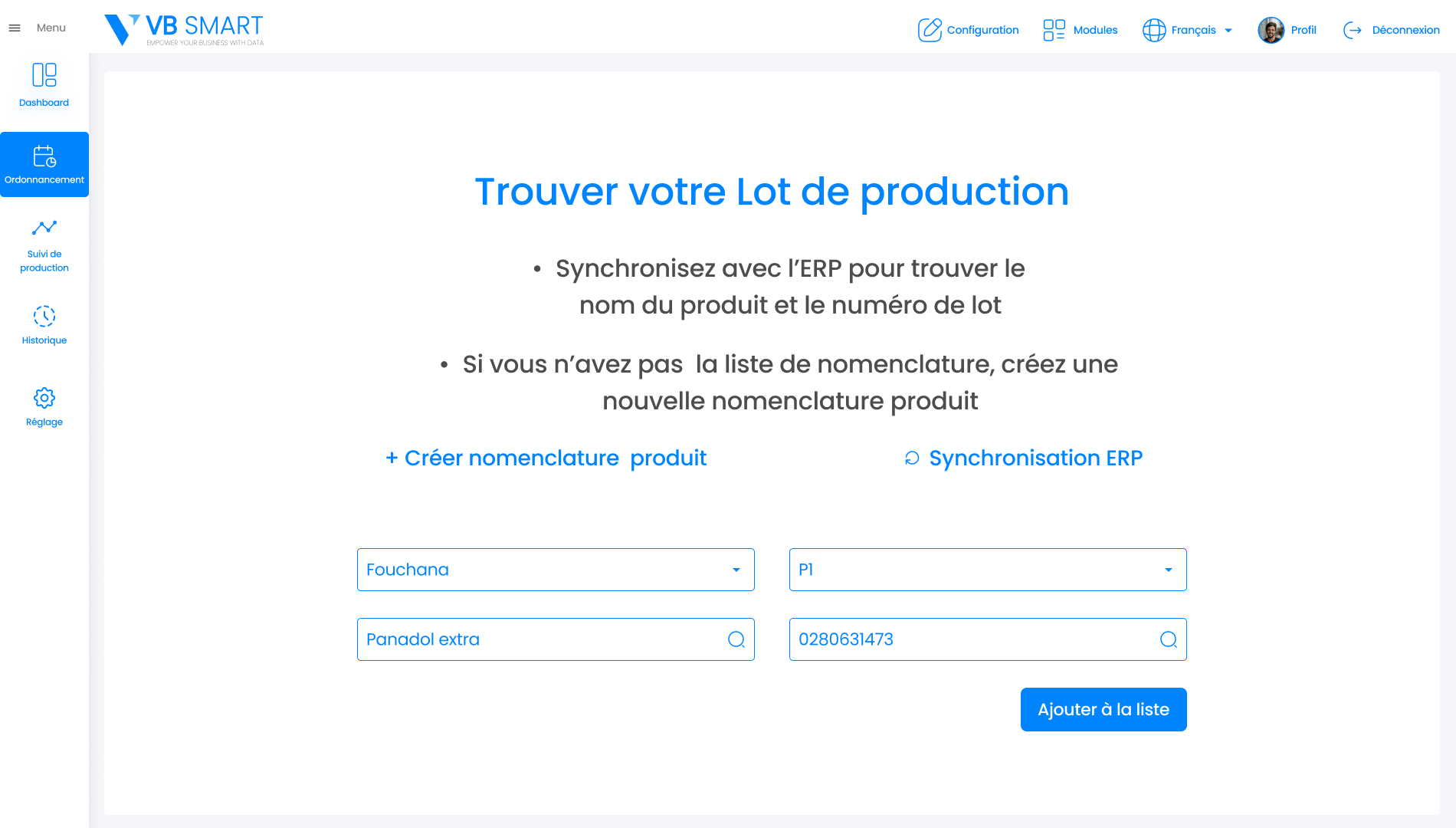 Si vous n’avez pas d’ERP, VB Smart met à votre disposition une section pour créer et gérer votre nomenclature produit directement dans notre plateforme