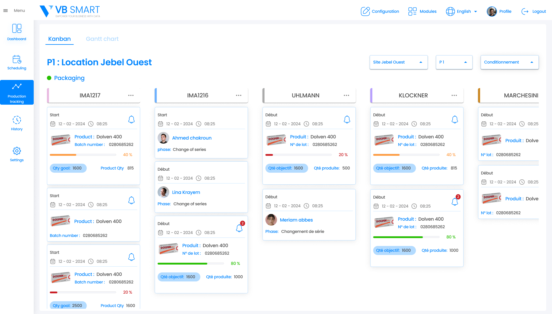 VB SMART vous propose le dashboard de rendement usine pour contrôler les dépenses de votre atelier.